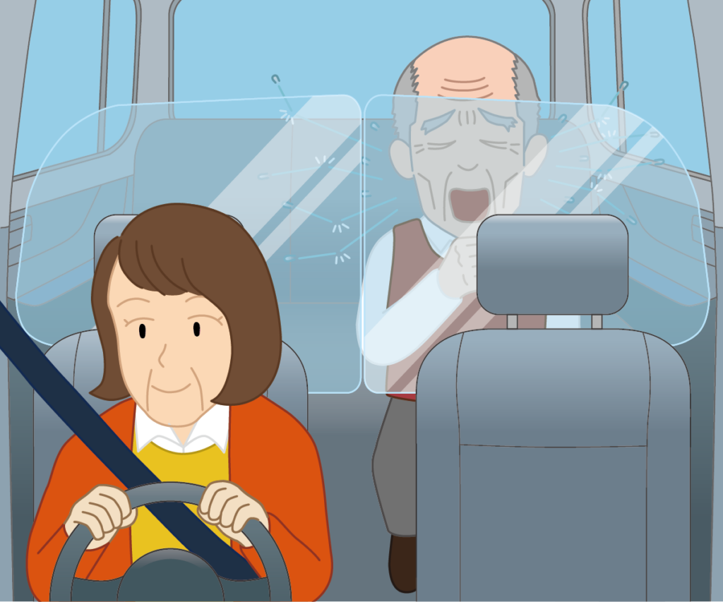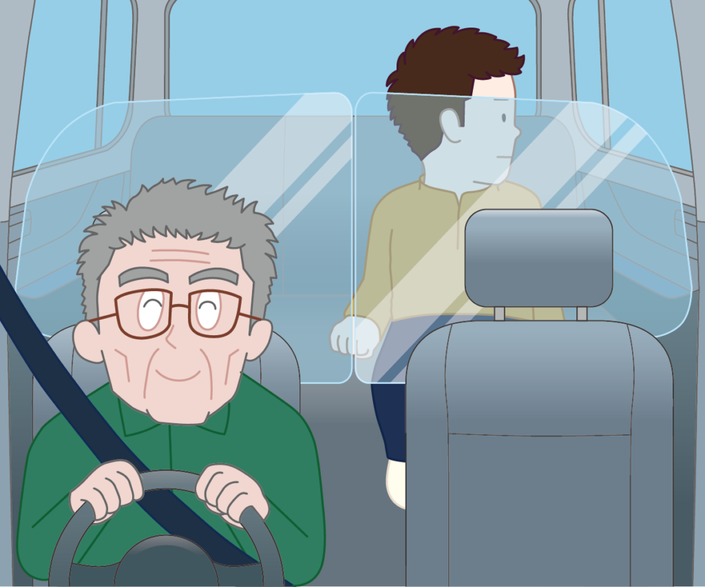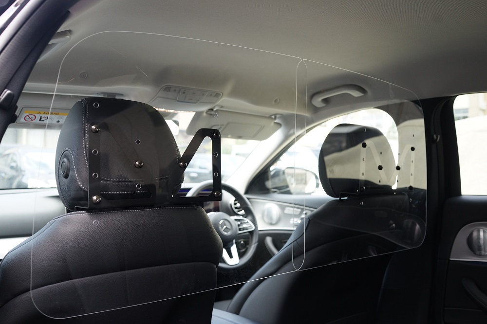 「クルマのアクリル板」は多様な車種に合わせた形状のアクリルで空間を区切り、皆さんに快適な送迎環境を提供します。